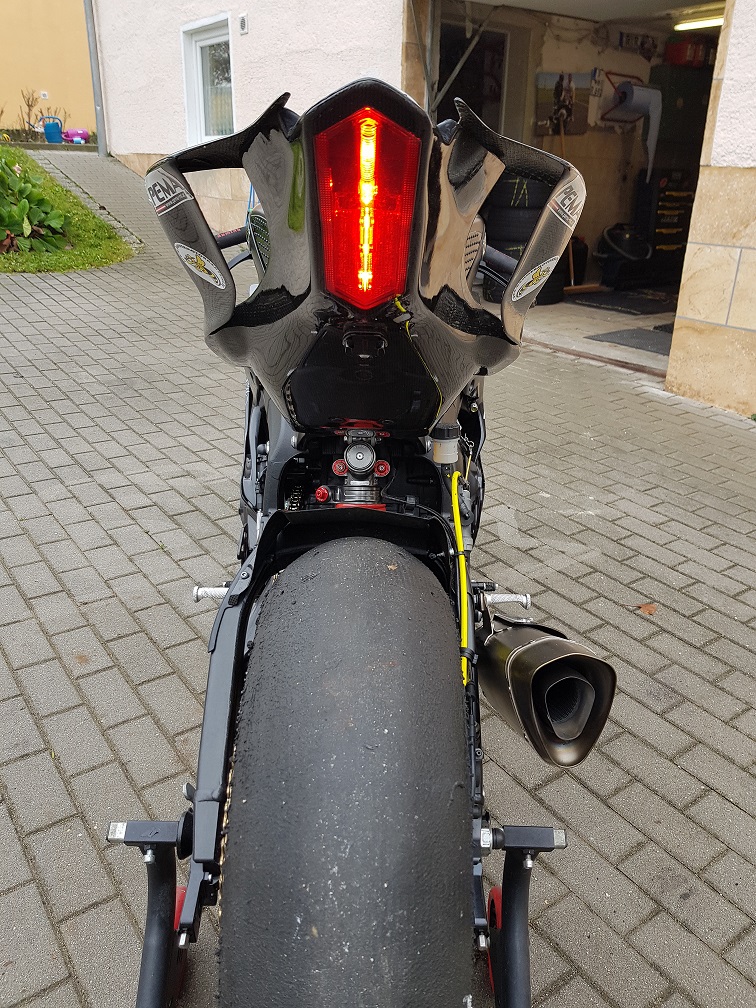 Hab das originale Rücklicht benutzt. Schaltbar über Lenkerschalter