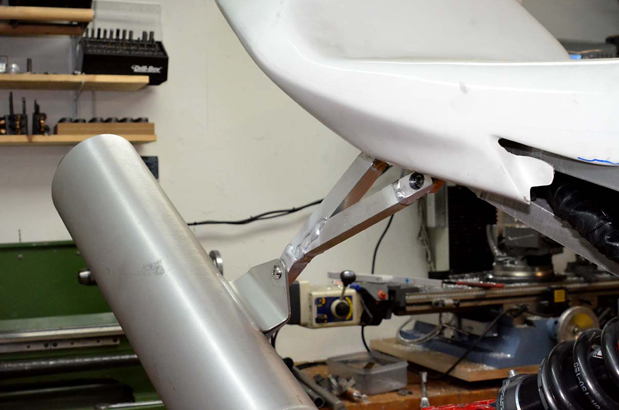 Dann gab es noch einen Auspuffhalter im Eigenbau. Wirklich schön ist anders, aber hält, ist günstig und passt. Was noch dran kommt, ist der Halter für den Transponder, dann ist der auch ordentlich untergebracht.