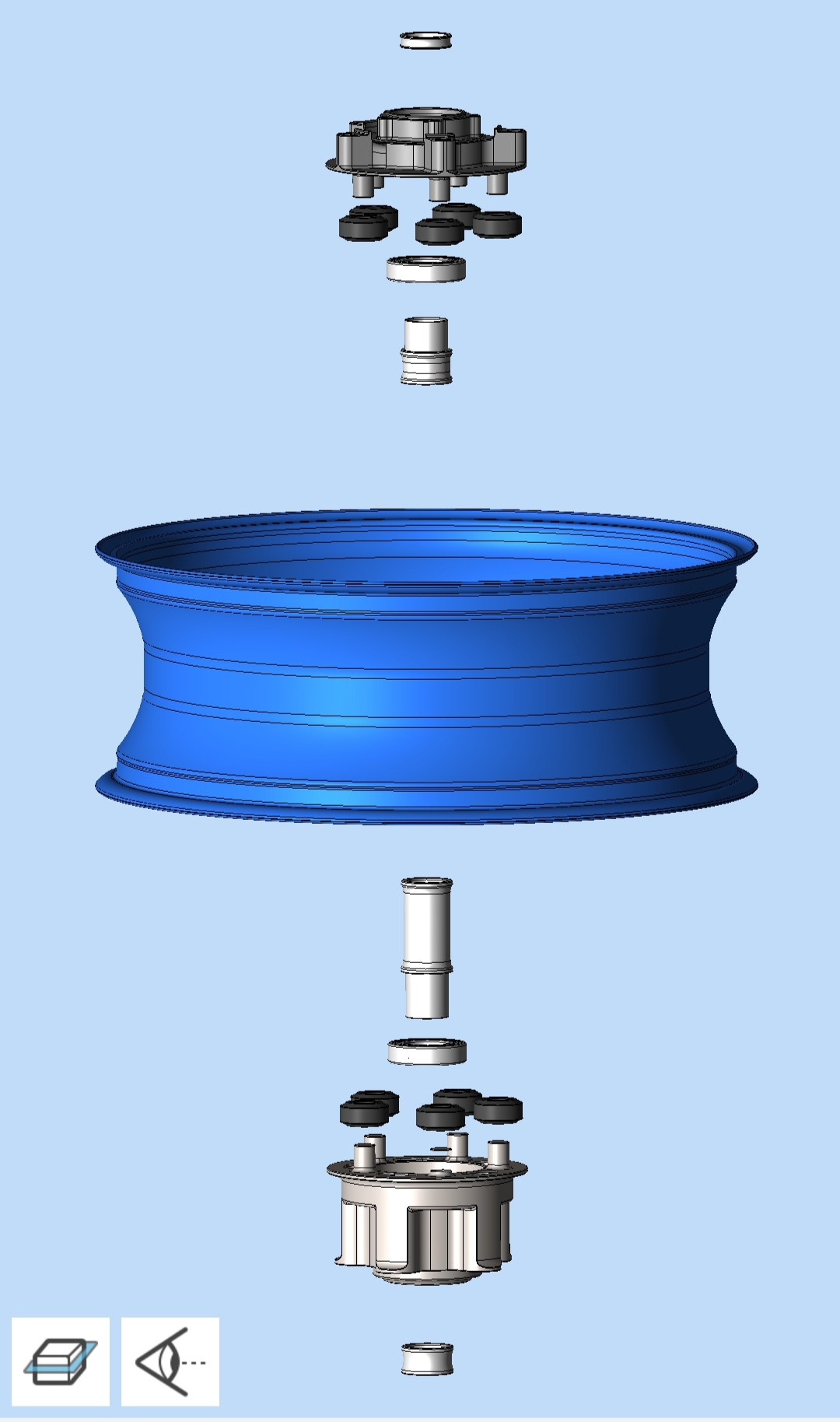 Ich hätte Bedenken, dass auf der Bremsscheibenseite auch mit festeren Kunststoffdämpfern das Moment (über das Offset der Bremsscheibenebe zur Flanschebene) zu einem Verkanten führen könnte...ich würde sagen, dass die Bremsscheiben in jedem Fall verschraubt werden sollte...mal davon abgeshen, dass man diese nicht wirklich benutzt aber wenn sollte alles funktionieren