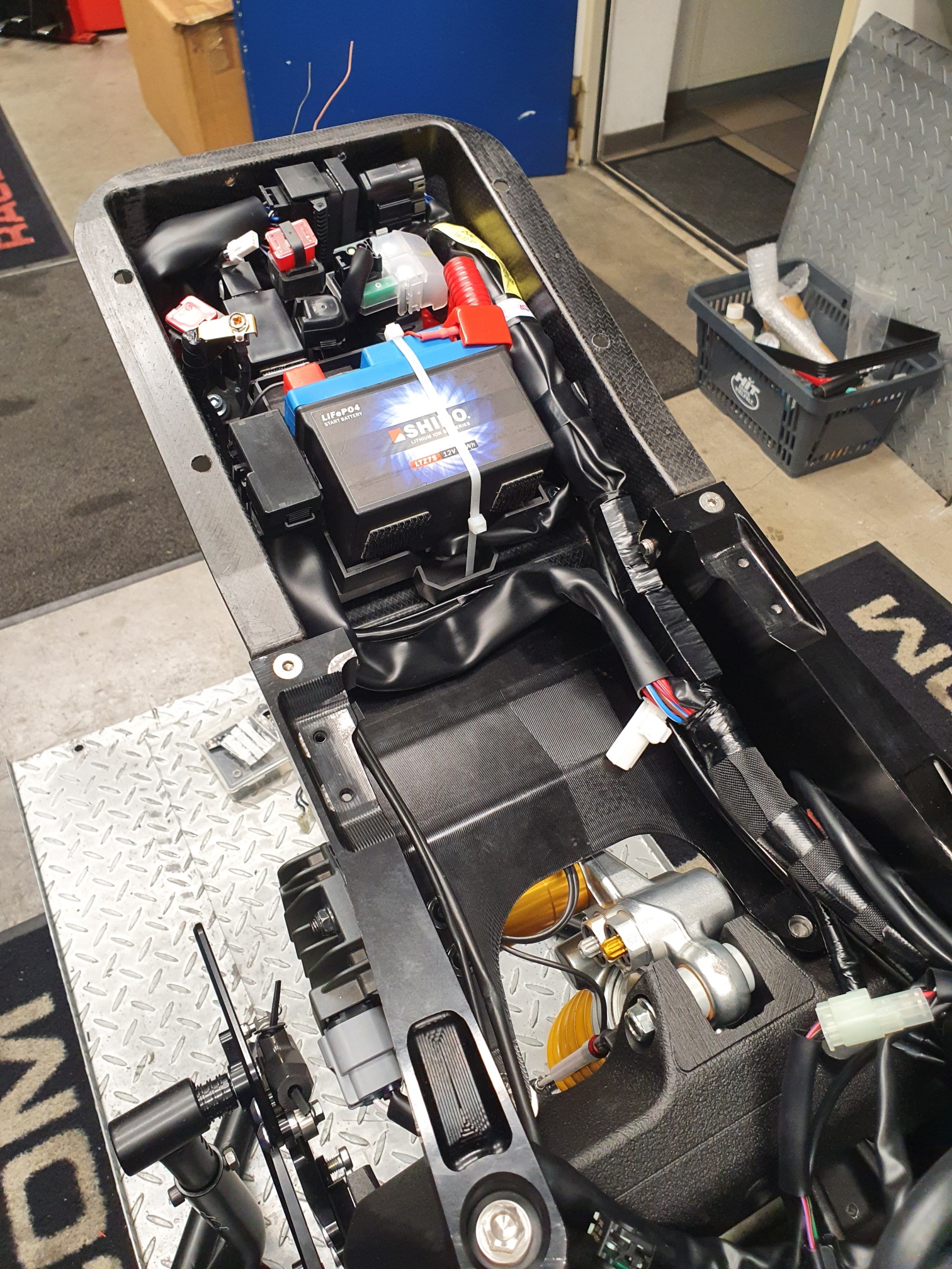 Ich hab dann parallel mit unserem Team-Mechaniker Dirk die Carbonhecks bearbeitet und im Gegensatz zu früher diesmal keine Gewindenieten eingezogen, sondern direkt alles mit Schnellverschlüssen. Ich kalkuliere die Demontage der kompletten Verkleidung in Zukunft für 2 Personen mit 10 sekunden