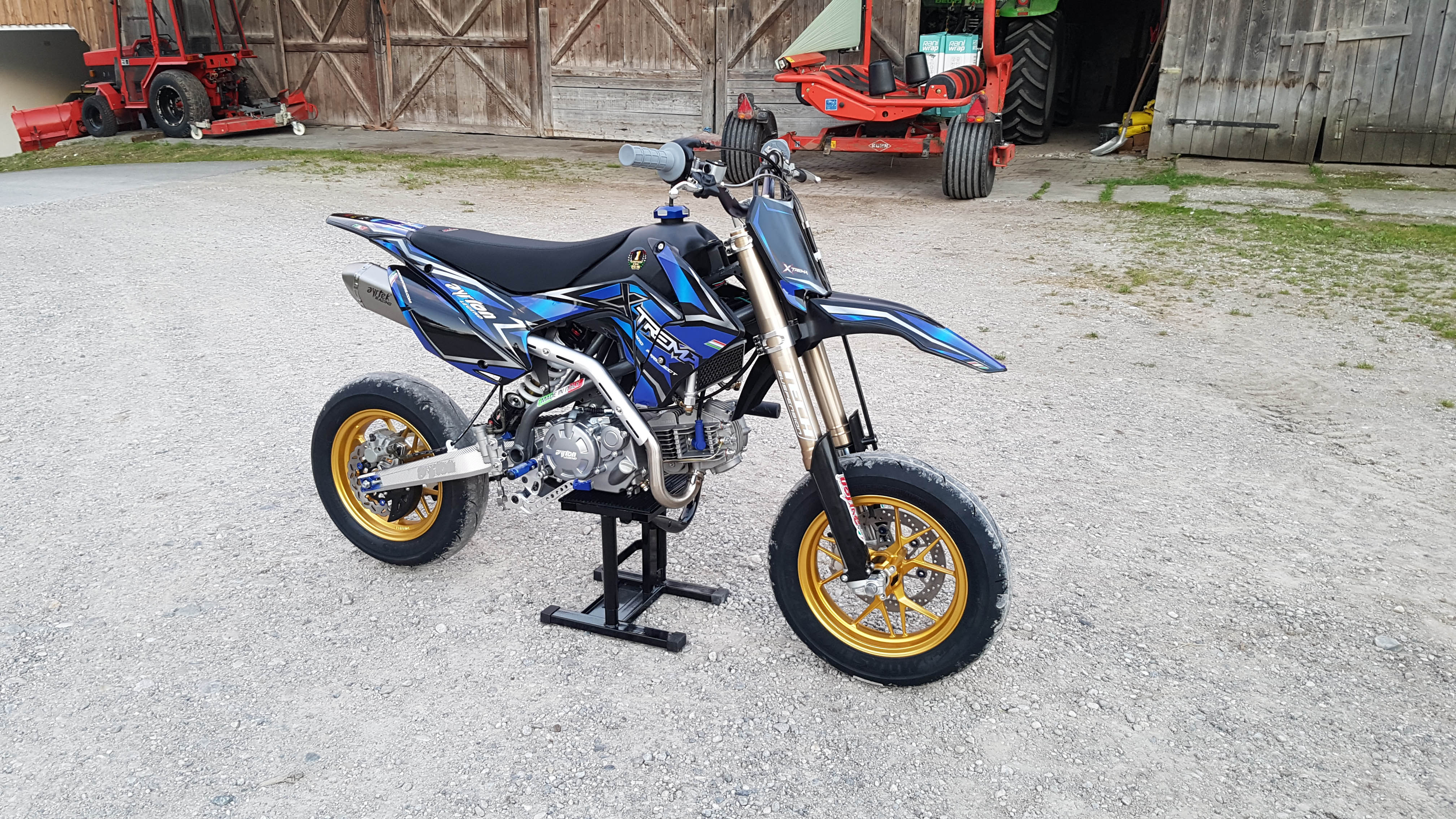 - Kein China Rahmen --> in Italien gefertigter Rahmen aus hochwertigen Stahl mit Supermoto Kinematik