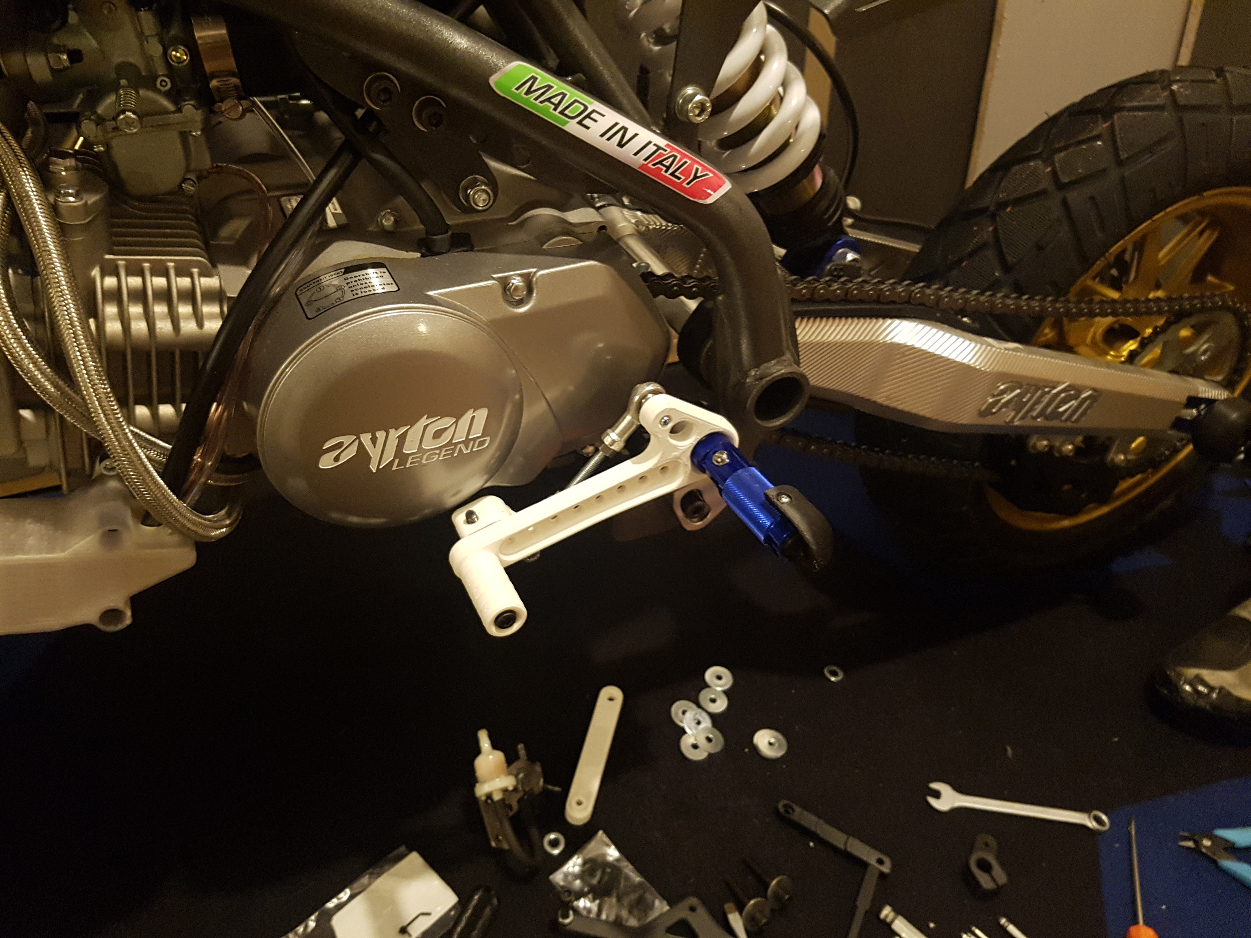 Problem ist, dass die Hebellänge die kürzeste auf dem Markt ist und damit die Schaltkraft schon ein wenig höher, also wer kleinere Füße hat der hat wohl pech gehabt. Von Ayrton selber gibt es auch eine Schaltanlage mit Gestänge evtl. ist diese besser aber eben auch Aufpreis.
