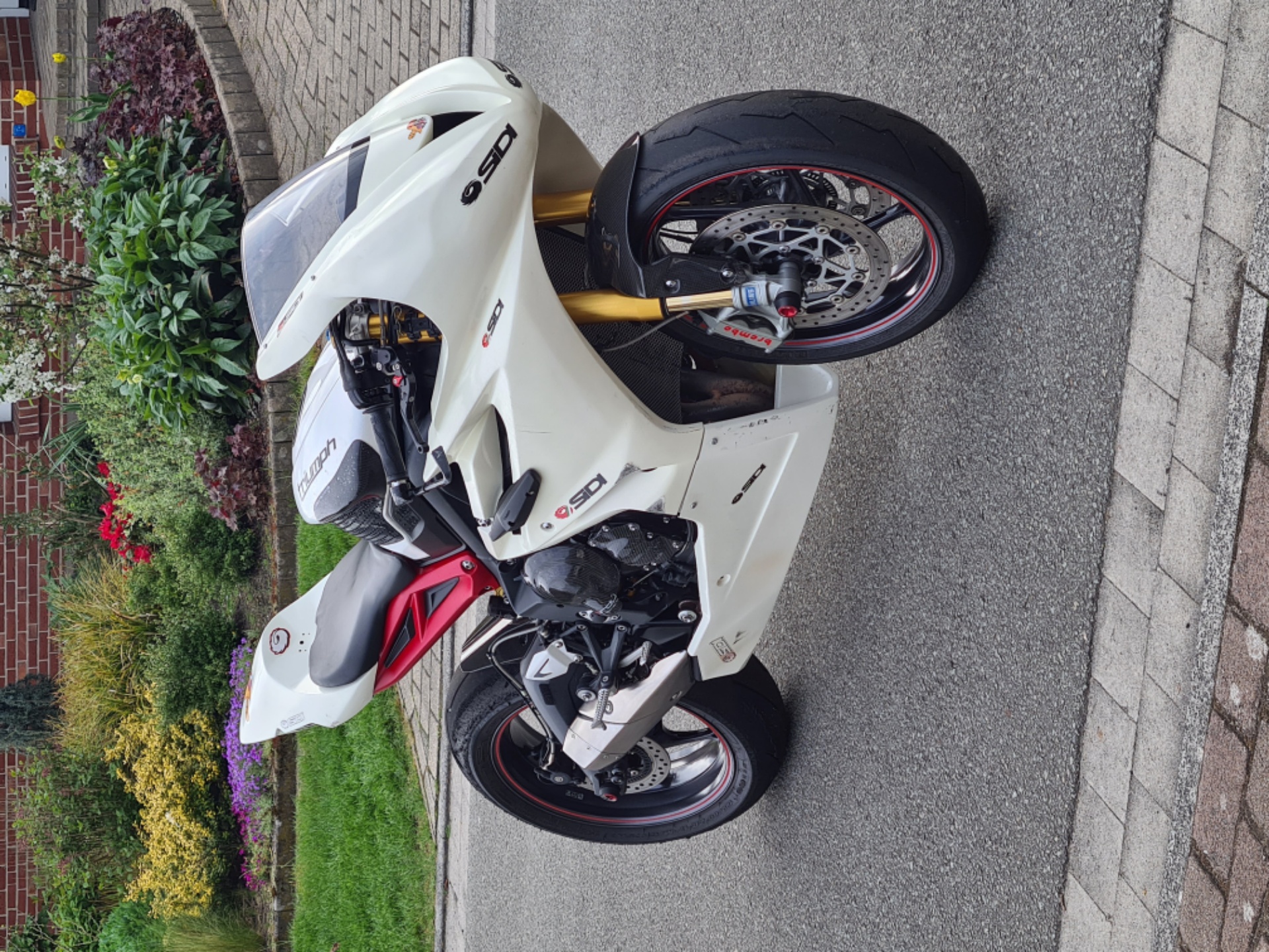 Gefahren bin ich mit der Aprilia RS660 von meinem Mann, die jedoch Original-Verkleidung drauf hat.