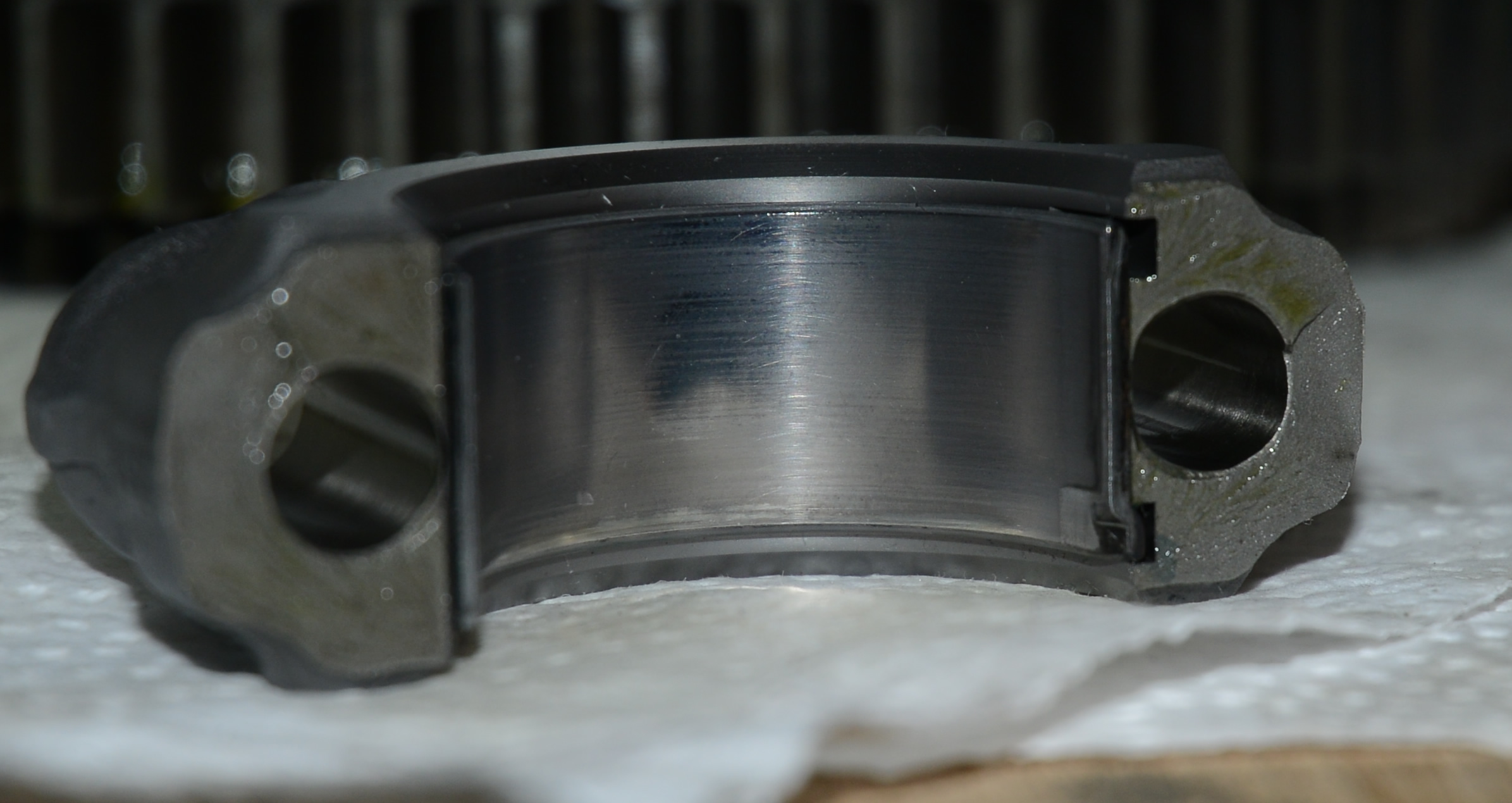 Auf die Bilder denkt man, dass das Gehäuse schon viel verschleisst ist, aber der Kreis ist grosser als die Kurbelwelle. Der grosse Kreis ist etwas im Werk bearbeitet.
