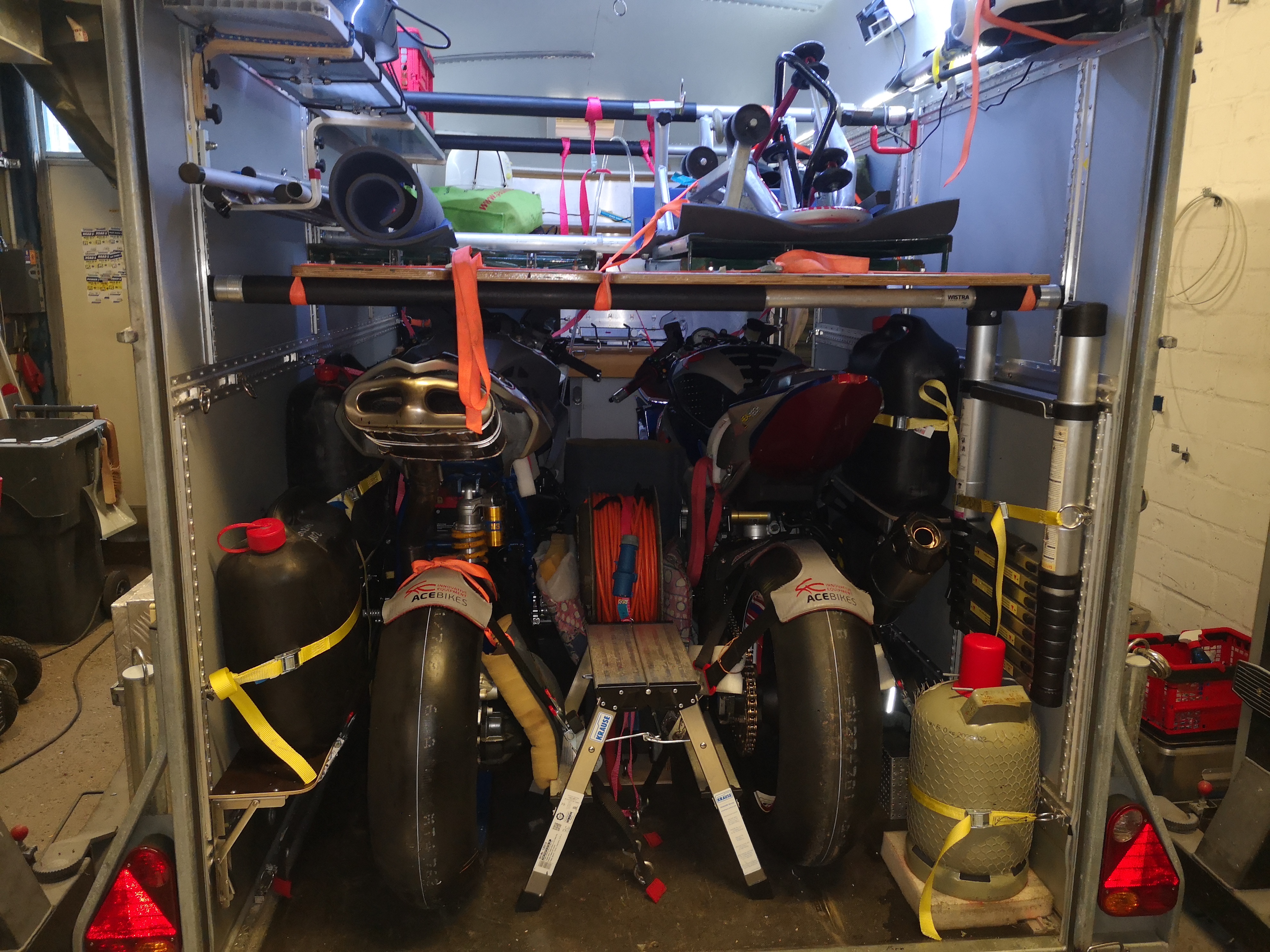 und hinten über die Reifen. Rechts und links eine "Opferplatte" an der Seitenwand zum Lenkerende um das ein und ausfedern zu kompensieren. Alles mehrfach getestet von NRW bis Portugal und rumpelige Nebenstraßen über Aragon usw.
