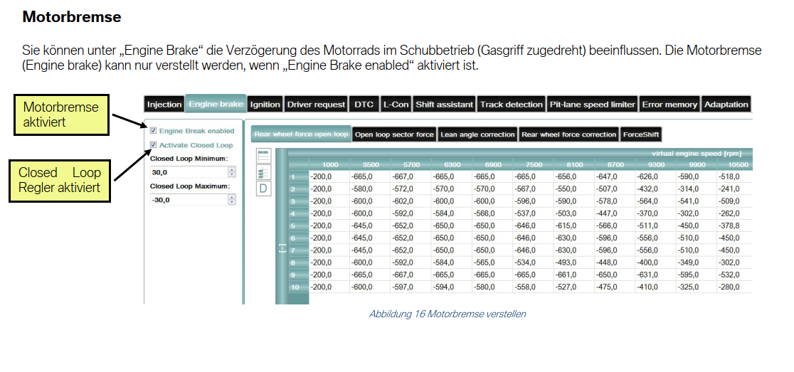 ich würde mich gerne etwas mehr über mögliche Strategien der Motorbremse unterhalten. Voraussetzung ist natürlich, dass man die Möglichkeit hat diese über das Steuergerät zu beeinflussen. Die neuesten Bikes haben das ja - in meinem Fall ist es eine RJ15 mit YEC KIT ECU, wo ich wirklich Gang- und Drehzahlselektiv die Einstellung vornehmen kann.