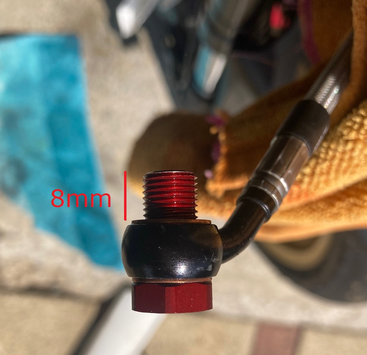 Mit dem Messchieber messe ich eine Tiefe von 10mm am Gewinde der Bremspumpe, das Gewinde der Schraube steht momentan 8mm über - also sollte das ja eigl. reingehen.