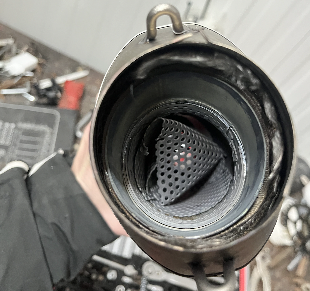 Als ich den Topf demontiert habe, ist mir das innen verbogen und komplett in den Querschnitt eingebogene Lochblech aufgefallen. Mein laienhaftes Auge hatte sofort die Vermutung, das das so nicht oginool ist. So wundert es mich nicht, dass ich immer rund 5s langsamer bin, als ich das von mir erwarte...