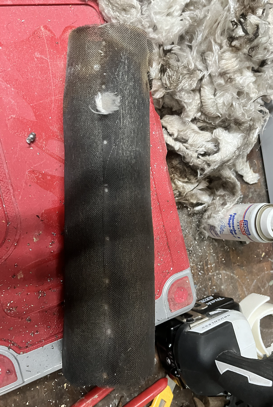 Also den Topf vollends aufgemacht und das "Rohr", welches aus gebogenem Lochblech, umwickelt mit einem Metallnetz besteht, rausgenommen.
