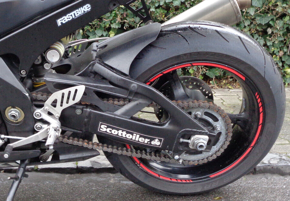 Der Scottoilspender sollte am Kettenrad anliegen, dann lüftet es das Öl nicht weg sondern schleudert es in die Kette
