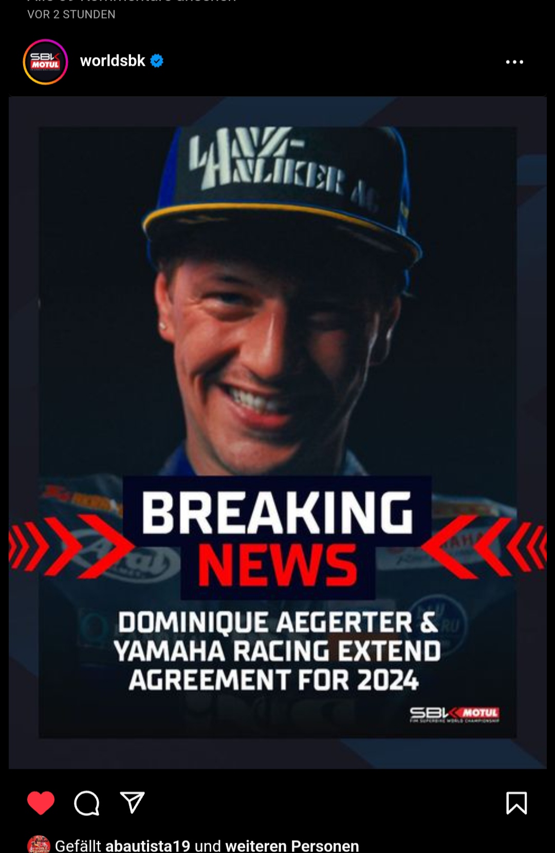 fraggle hat geschrieben:Auch wenn er es verdient hat. Aber einen tieferen Sinn erschließt sich mir daraus nicht. Ducati braucht keinen Test, AB19 kommt (hoffentlich) nicht mehr in die MotoGP, denn er ist in der WSBK mehr als perfekt aufgehoben. Ich denke in der MotoGP würden sie ihn über die Saison gesehen „kaputt“ machen.wizzard hat geschrieben:und der Alvaro bekommt auch seine Chance aufzuzeigen mit vernünftigem Material...