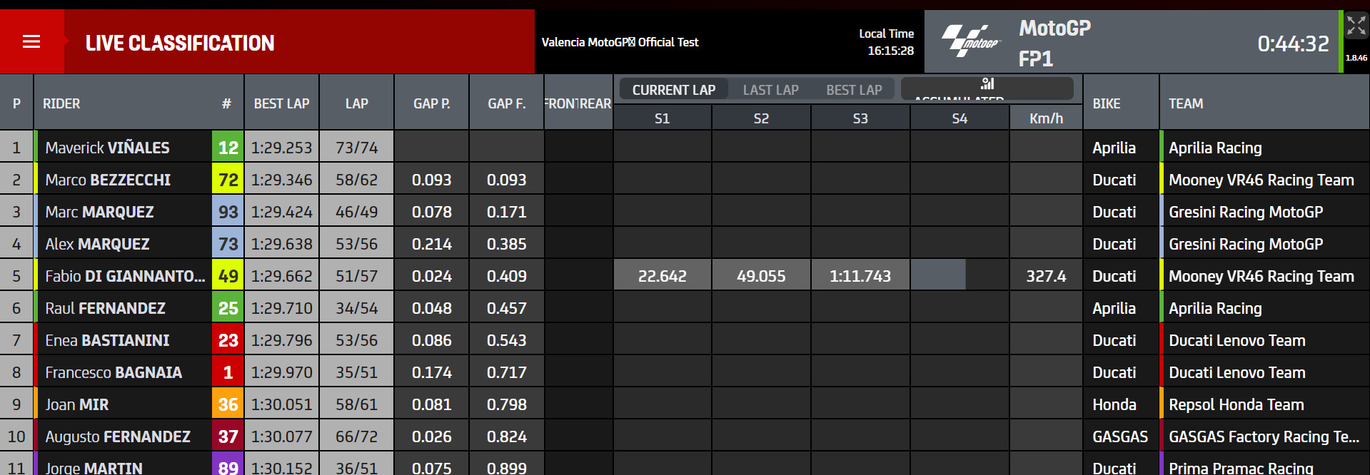 Honda / Mir auf 9, Test läuft aber noch 45 min.: