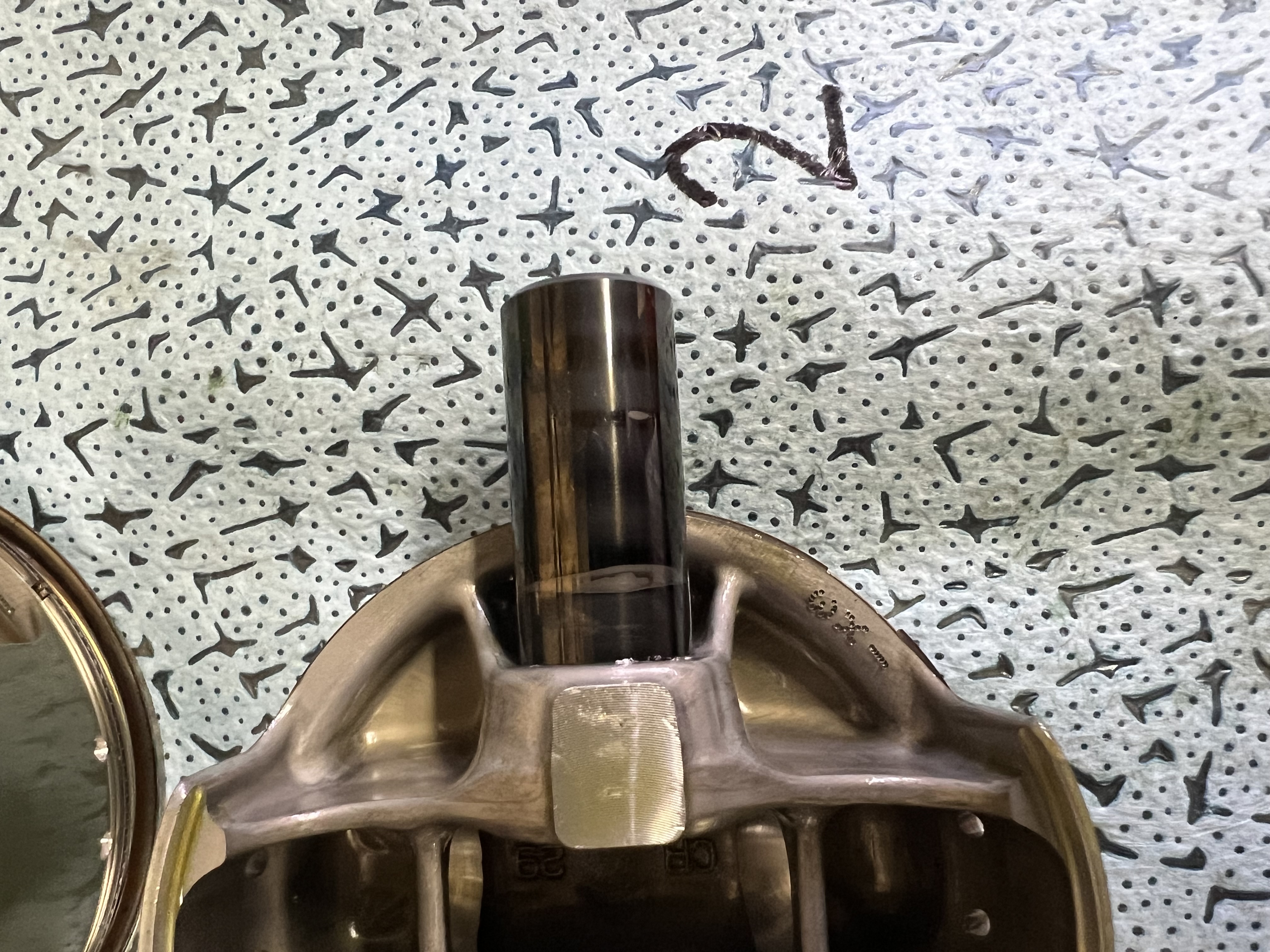 Die Pleuel sehen tatsächlich nach der Laufleistung noch super aus (soweit ich das Beurteilen kann), die Beschichtung der Kolbenbolzen vor allem am Zylinder 2 hat schon etwas gelitten.