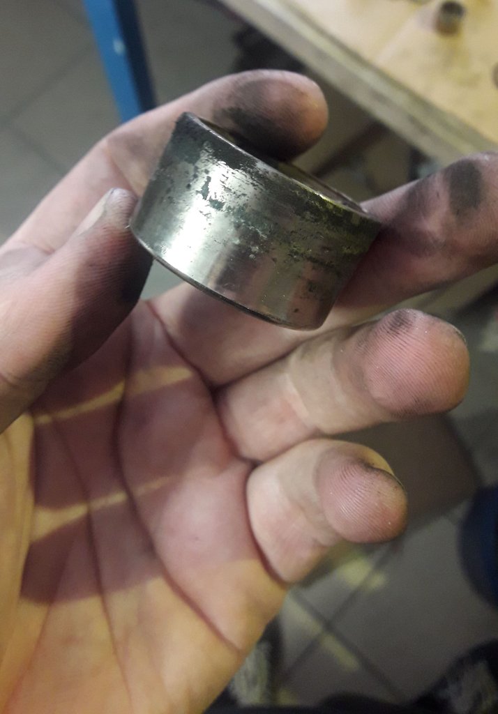 Da das ein ziemlicher Kampf war, habe ich die Distanzrohre, die in der Felge sitzen gleich nach dem Entfernen mit einer Fase ausgestattet, falls die Radlager jemals wieder raus müssen. (Ich hoffe nicht.)