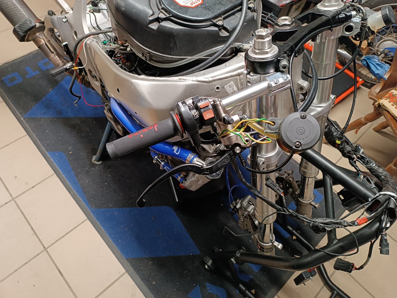 Da sich das Fahrergewicht seit der Saison 2021 um 28 Kilo reduziert hat, wird das Fahrwerk denke ich neue Federn brauchen. Falls an der Gabel mit moderatem Aufwand etwas verbessert werden kann, lasse ich das auch machen. Dazu halte ich noch Rücksprache mit Pepe.