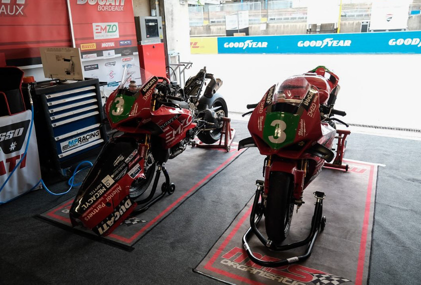 Die eine Duc #3 die mitfährt ist eine V4S mit 1100ccm und deshalb in der Experimental-Class am Start.