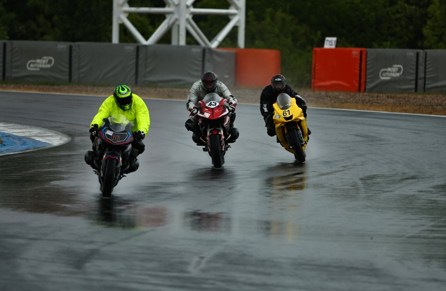 "Überleben", sage ich mir selbst, "heil wieder in die Box, darum geht es hier!" Die Ampel geht aus, und ich fahre einfach nur los. Drehmoment gepaart mit Furchtlosigkeit und Testosteron schiebt sich an mir vorbei und zielt auf Kurve 1. Meine Augen werden immer größer. Ich beneide Tanja, die weiter vorne mit ihrer BMW stand, und somit weniger mit ansehen muss von dem Spektakel. Wheelieangst, ich hatte nach über 15 Jahren immer noch Wheelieangst. Alle, wirklich alle in diesem Feld hatten, mehr zu verlieren als ich. Warum etwas riskieren. Ich entschied mich, das Rennen als Warmfahrübung für das folgende Rennen zu nutzen und schaltete auf den Safe-Mode. A propos "Mode". Die R6 fuhr im Standardmodus ("Rain" ist was für richtige Mimis