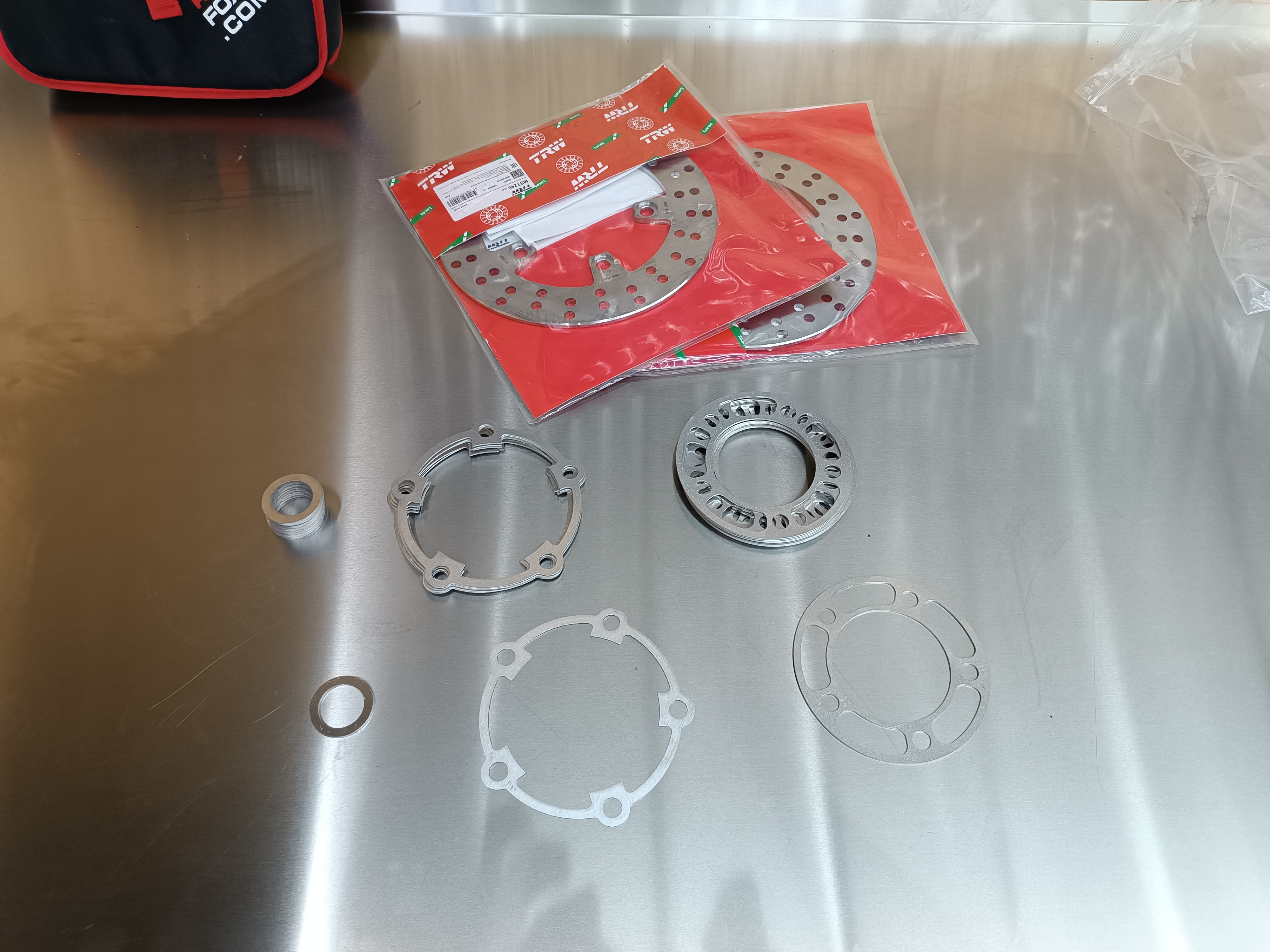 Die Vorderradfelge hat natürlich nicht direkt gepasst weil ich ein falsches Maß für die Distanz genannt bekommen hatte. Darum musste ich erstmal in mühevoller Kleinarbeit eine der Scheiben von 2,5mm auf 1mm abschleifen.