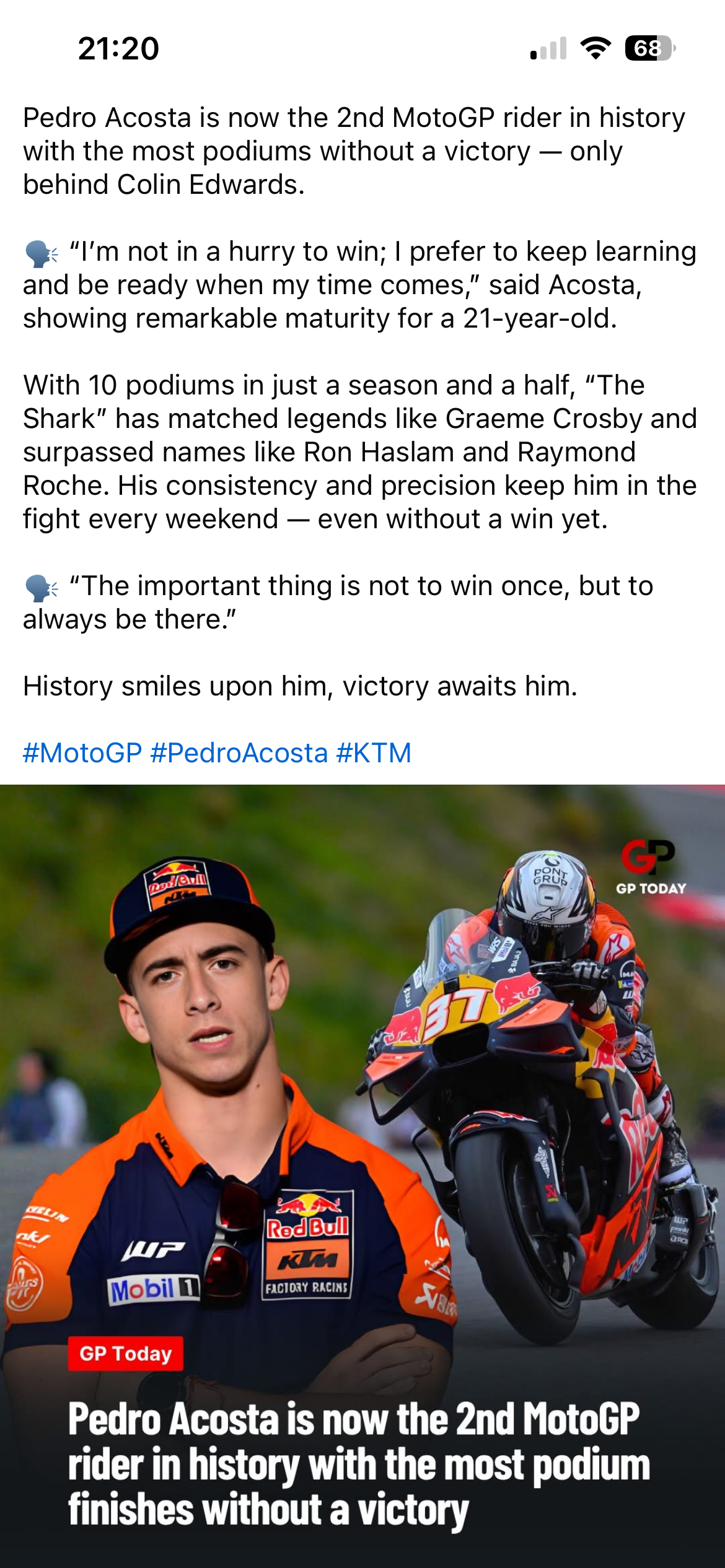 um so höher muss man da dann aber auch Acostas Einstand 2024 auf der GasGas bewerten, oder?