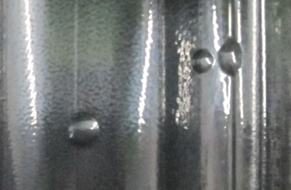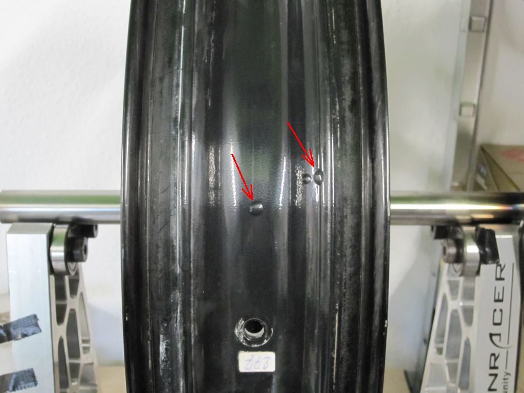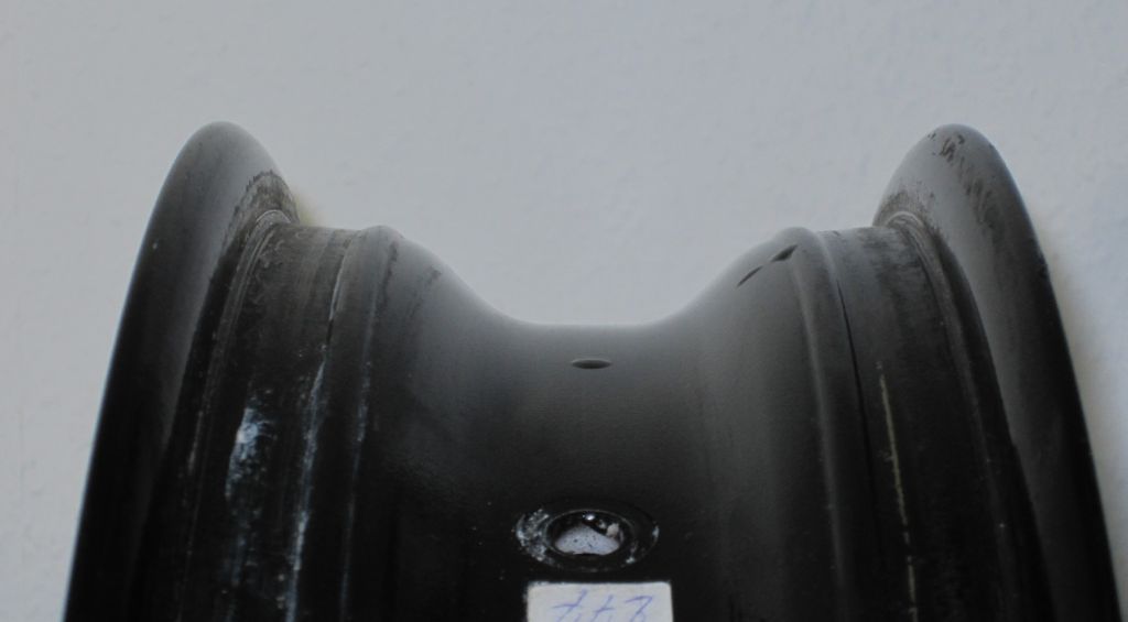 Als ich neulich samt Mopped weggekegelt wurde, hat auch die vordere Felge (Marchesini Magnesium, schwarz beschichtet) das zeitliche gesegnet. Vorher habe ich immer nur Reifen gewechselt und die Oberfläche des Felgenmauls nicht weiter betrachtet. Nach dem Zerlegen bemerkte ich in der Beschichtung an vielen Stellen Blasen, die mit einer Flüssigkeit gefüllt sind.