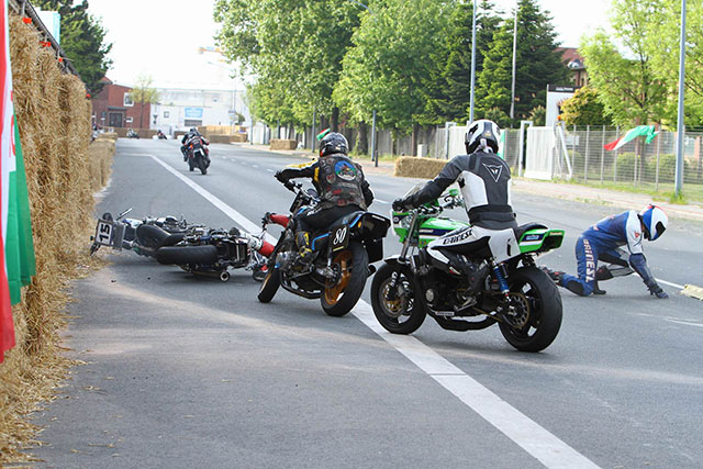 ... anstatt den Langsammen aussen zu überholen, habe ich das Mopped vorne überbremst