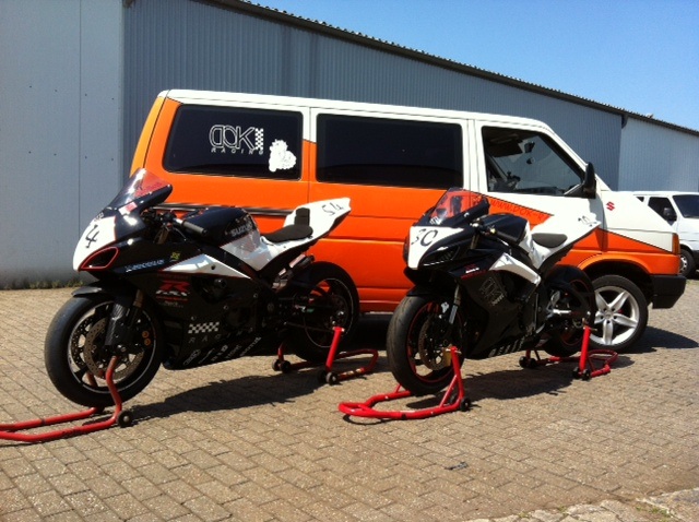 Unsere Renneisen: rechts die frisch aufgebaute 600er meiner Holden und links meine olle Kilo K6:lol:
