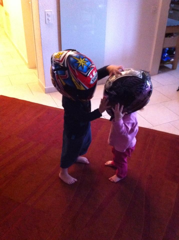 Meine Kinder spielen immer mit meinem alten (aber noch unzerstürzten) X-Spirit I Daijiro Kato Helm :mrgreen: :mrgreen: :mrgreen: