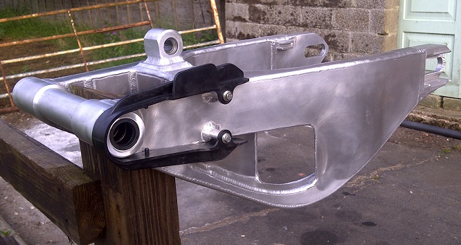 Eine Schwinge, oder besser gesagt, jemanden der mir die Schwinge baut hab ich in England aufgetrieben.