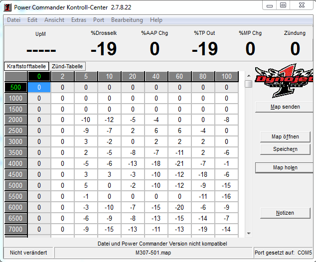 Deswegen sind auch 4 Kennfelder vorhanden. Wobei man die TP Map normal nicht braucht. Und die Zündmap auch nur bei Bedarf.