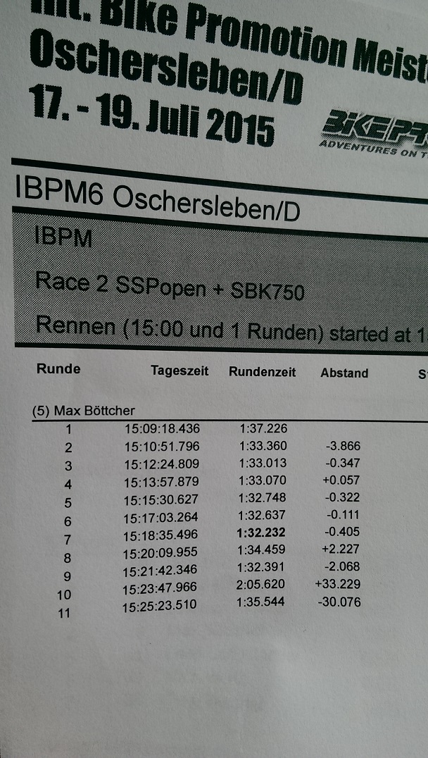 Allerdings kam ich nach der Auslaufrunde herein und die Rennleitung teilte mir mit, das ich einen Frühstart hatte...20sek Strafe...platz 4.