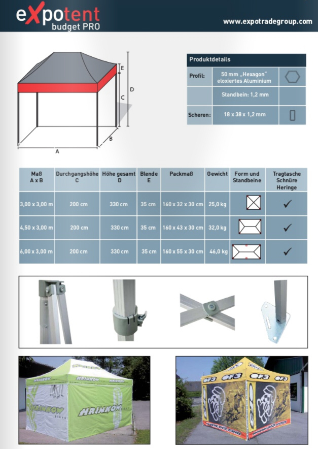 Ich hab mir heuer ein Expotent Budget Pro in der Größe 3x4,5m gekauft. Ist eine billigere Ausführung der an sich nicht grad günstigen Zelte von Expotent, braucht sich aber vor den teuren Artgenossen aber schon gar nicht verstecken. Freu mich schon aufs nächste Jahr wenn ich es nutzen kann. Habs erst 1x vor dem Winter aufstellen können. Super Material und Verarbeitung, wirklich spitze.