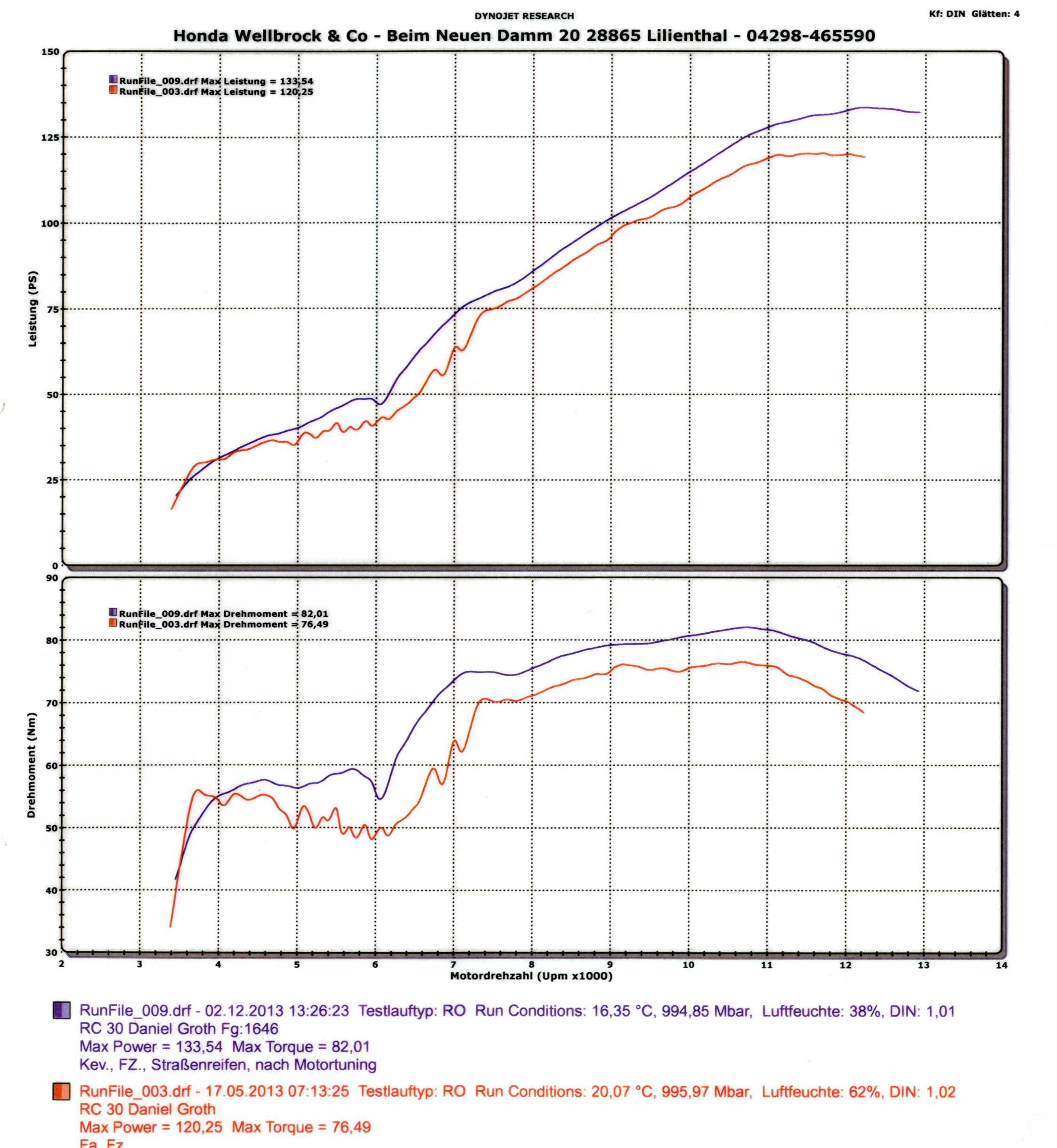 Das ist die Ausgangslage: 124PS am Rad. Arrow komplett,HRC CDI, Bazzaz, HRP Trichter...