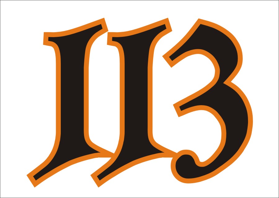 Schriftart soll die von Jägermeister sein. Größe sollte etwa 10cm sein, orangener Rand, schwarze Zahl.