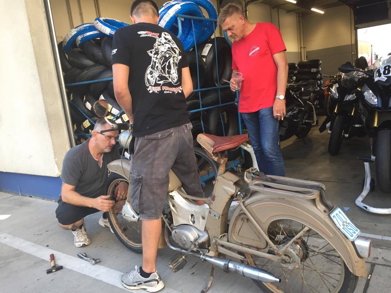 Papa, Tim, Ron, Anka, Thomas...und viele wichtige Tipps von Jan und Mark. Sonntag hab ich kein Lächeln über die Lippen gebracht, so kennt man mich nicht. Das wird beim nächsten Mal wieder besser, wenn das Motorrad wieder läuft...Ich hoffe das passiert schnell...