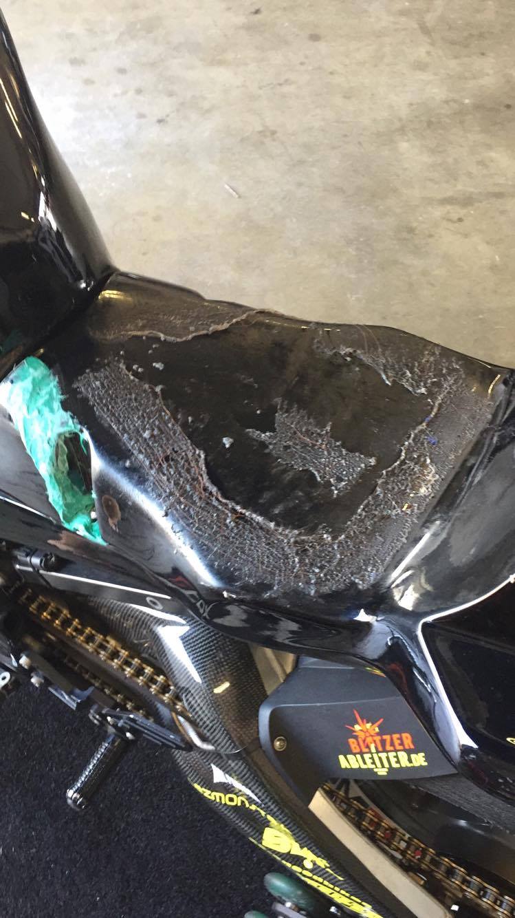 Nach langem hin und her endlich eine Gabel gefunden, zum Telefon gegriffen und den Hamburger Jung namens Dave angerufen, schnappte ich alles was ich brauche und fuhr nach Oschersleben. Dort tauschte Danger gestern den Holm und jetzt fahr ich tatsächlich Motorrad. Nach viel Pech folgte Glück, welches ich unheimlich zu schätzen weiß. Danke auch an BiPro für das geplante Wochenende mit meinem zweiten WM Start :D