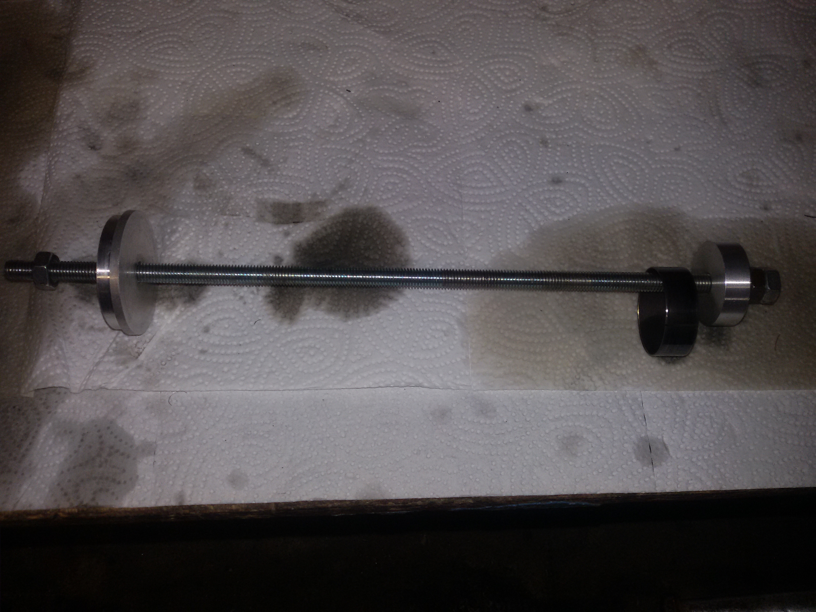 Dieser hat 41,9mm und wird von oben ins Standrohr gesteckt und dann mittels Gewindestange wird die Buchse aus ihrem Sitz gezogen.