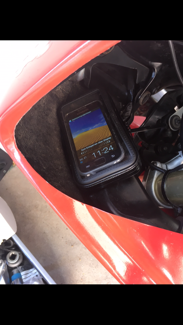 Handy steck hinter der Verkleidung.