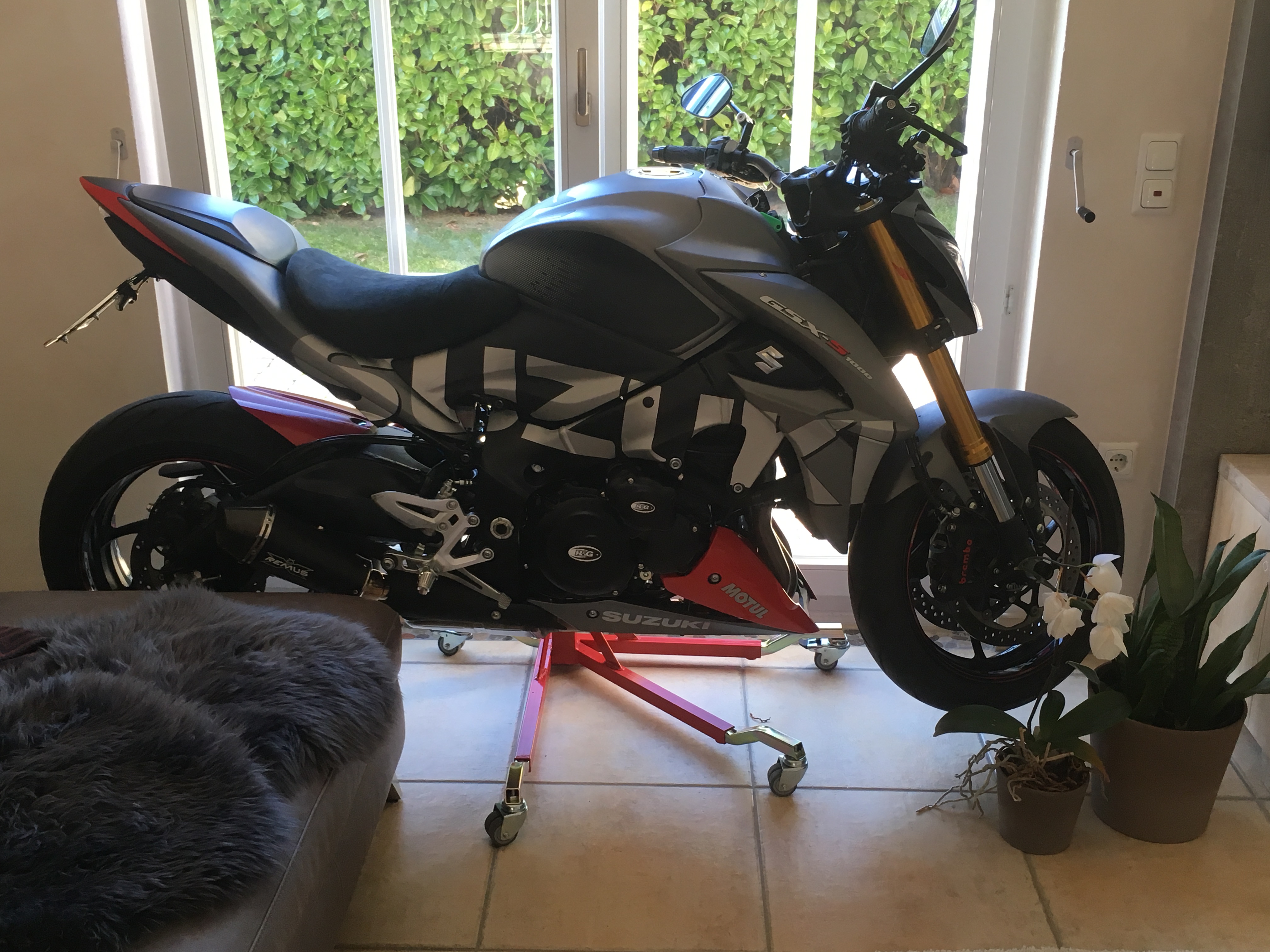 Ich hatte meine Duc vor dem Umbau auch im Wohnzimmer stehen. Alle Drohungen meiner Frau, dass sie sich scheiden lässt habe ich leichtsinnig ignoriert und das Motorrad als sie einkaufen war ins Wohnzimmer geschoben. (Sie hat es bisher wirklich nicht getan, tolle Frau :-))