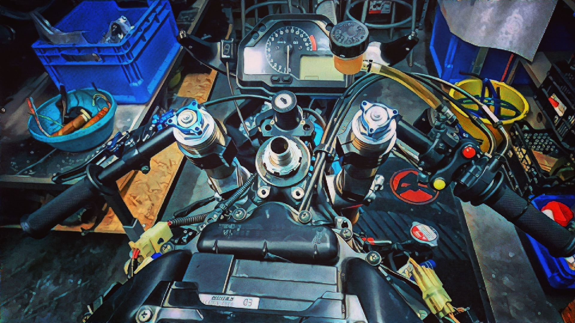 Zeitgleich fand ich für sehr günstiges Geld einen Wilbers Lenkungsdämpfer und eine Bremspumpe der SC59 in Top Zustand >>> zugeschlagen! Sieht schonmal garnicht so schlecht aus...