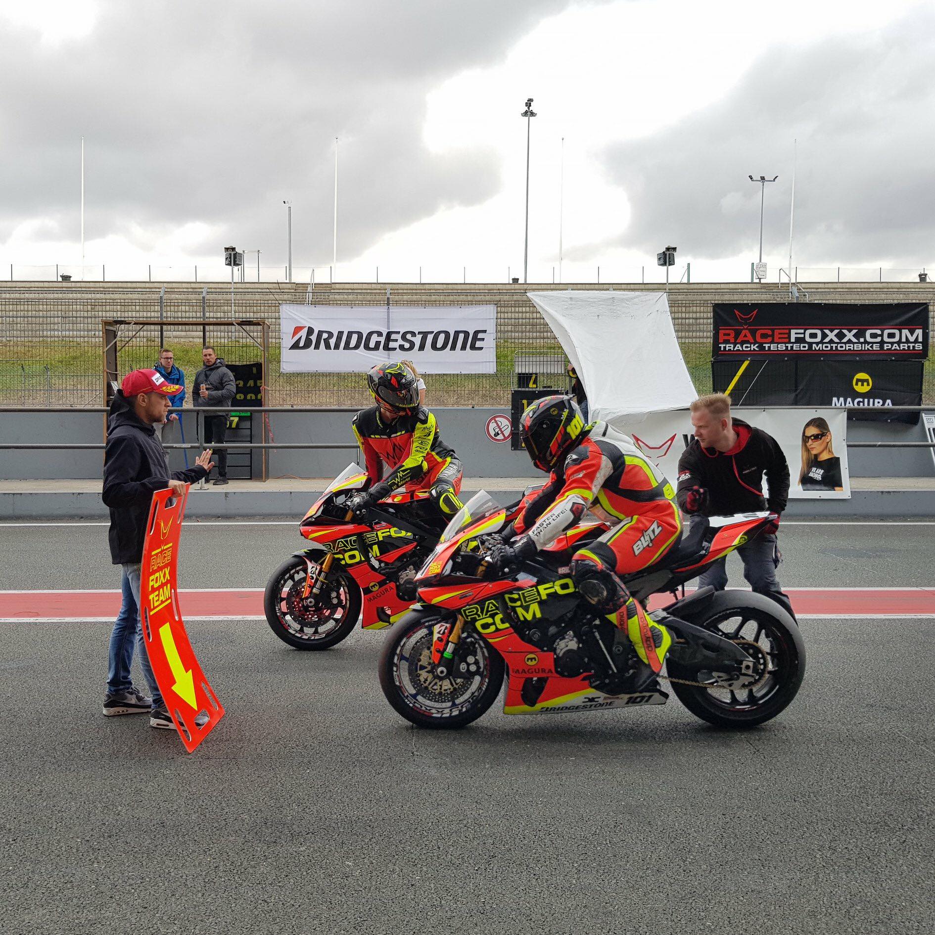 Wir hatten absolut genialen Support, da kann wirklich jeder, eingeschlossen mir natürlich, normalerweise davon träumen, auf unserer Ebene so supportet zu werden. Bridgestone entschied von sich aus, mit 2 Leuten vor Ort zu sein. Und nicht irgendwer, sondern Michael Flügel, der Bridgestone Deutschland Koordinator für den Motorsport und Kontaktmann von Racefoxx, sowie Peter Baumgartner, der ehemalige MotoGP Reifentechniker, der mit allen Stars aus der Szene gearbeitet hat, die man sich vorstellen kann.