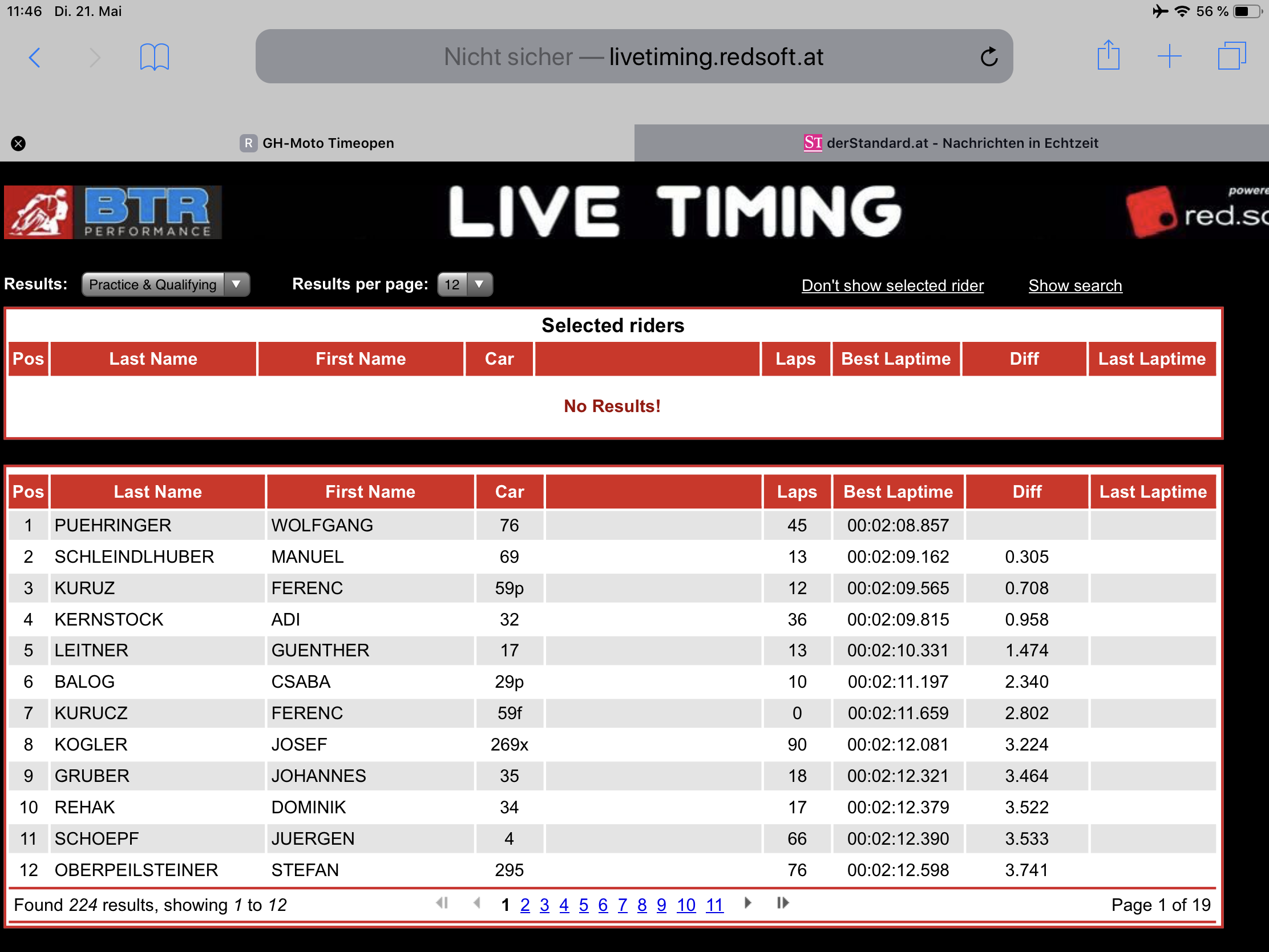 überholt. Die ersten Runden waren ein richtiger Eiertanz. Rundenzeit 2,19.... Nach drei Runden hat der