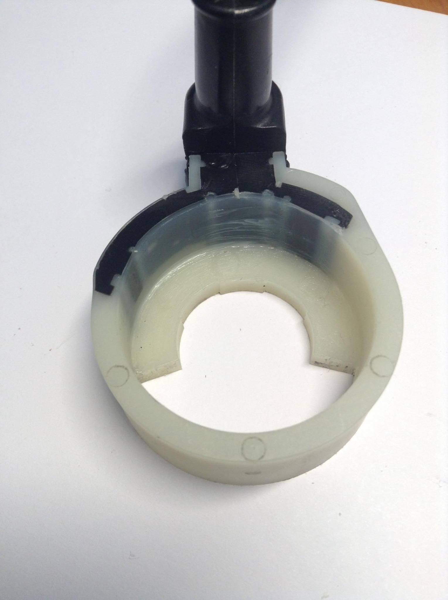 Mir ist wichtig, dass der alte mech. Anschlag erhalten bleibt wodurch alles etwas eng wird. Elegant wäre diesen durch einen eigenen zu ersetzen, der geeignete Anschaubpunkte für eine Alu-Servoscheibe hat (ansich zu viel Arbeit). Man könnte auch versuchen eine Adapterplatte unter die Mutter zu bekommen wobei das Gewinde etwas kurz wird. Jetzt gibt es noch keine konkrete Lösung. Denke es sollte aber kein großes Problem sein.