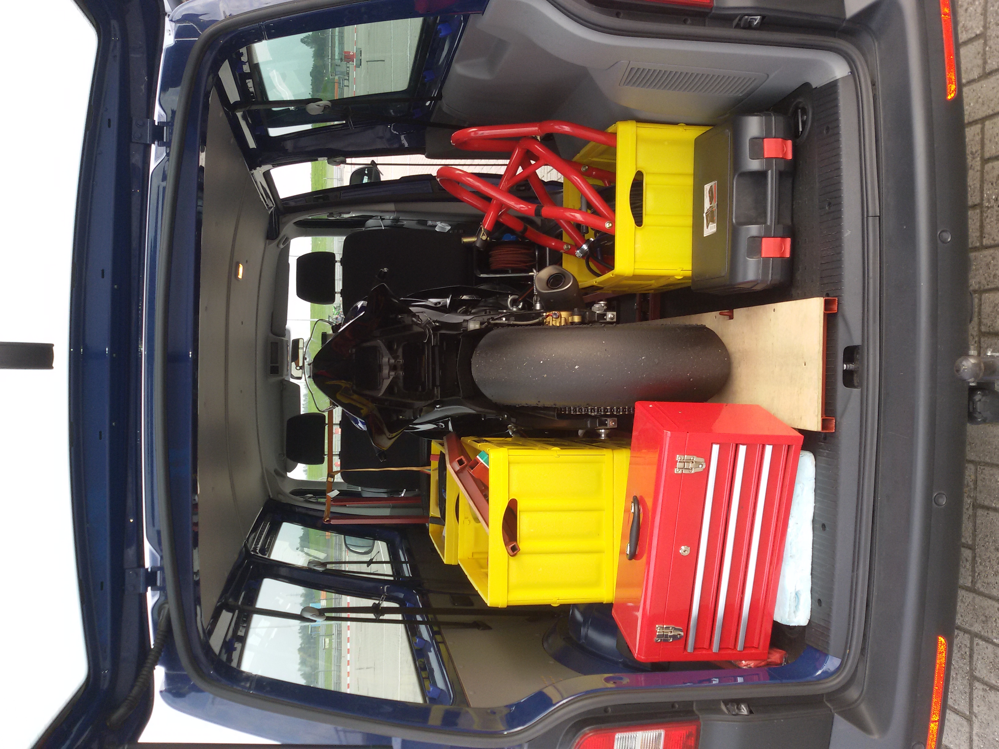 Anfangs hatte ich das Motorrad aber noch im Hänger und habe im Bulli geschlafen, dazu hatten wir uns nen Schlafsofa gekauft welches genau in den Bulli passte. War aber nicht der knaller, also brauchten wir noch Verdunkelungen für die Scheiben, usw. Ende vom Lied, wir haben uns einen Wohnwagen gekauft und das Motorrad in den Bulli verfachtet, das ist einfach viel angenehmer als im Bulli zu pennen. Aber das ist Geschmackssache.
