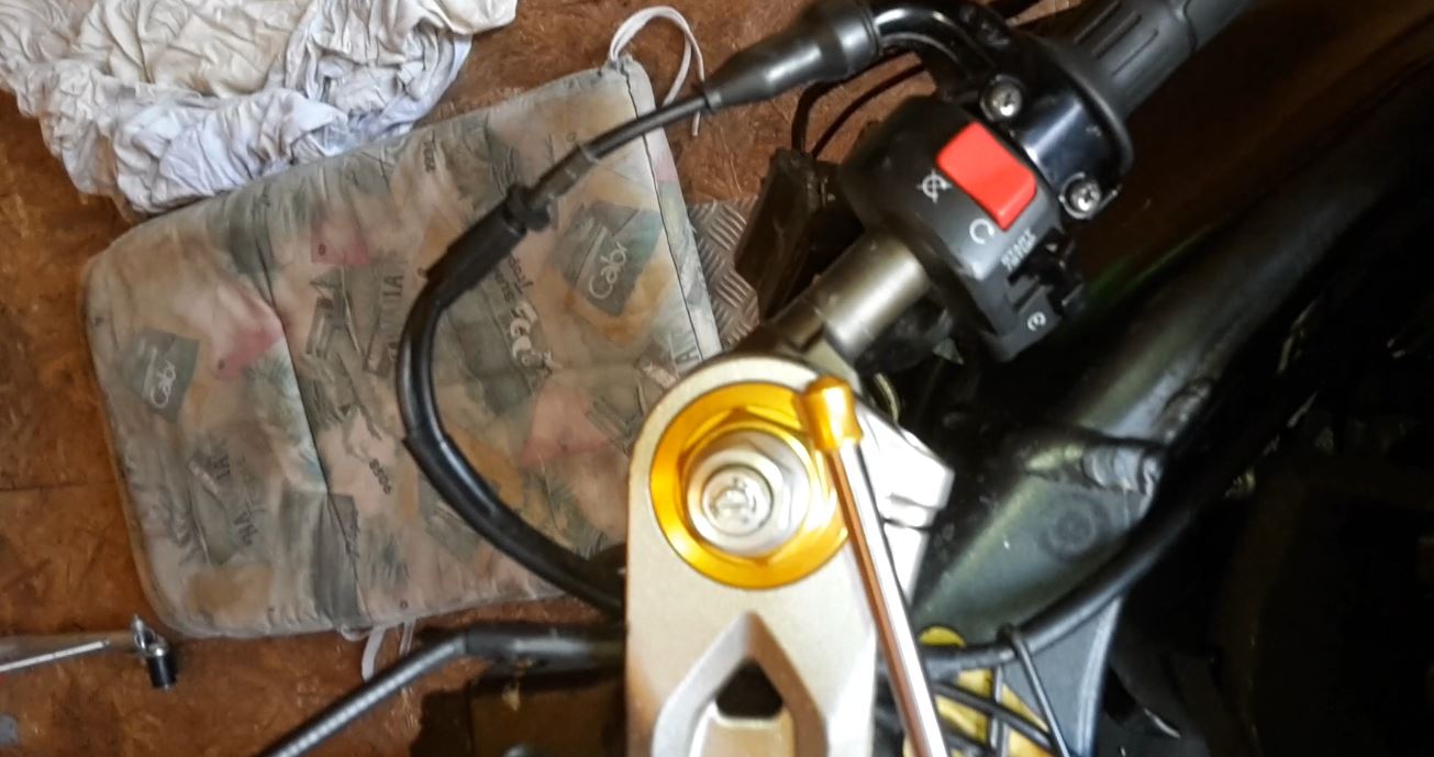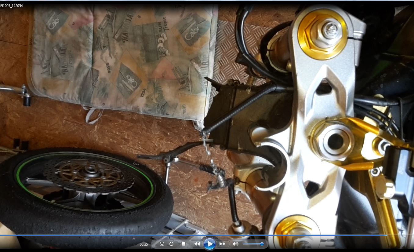 Die obere Gabelbrücke hatte ich im eingebauten Zustand schon getauscht durch eine andere, leider ohne Erfolg.