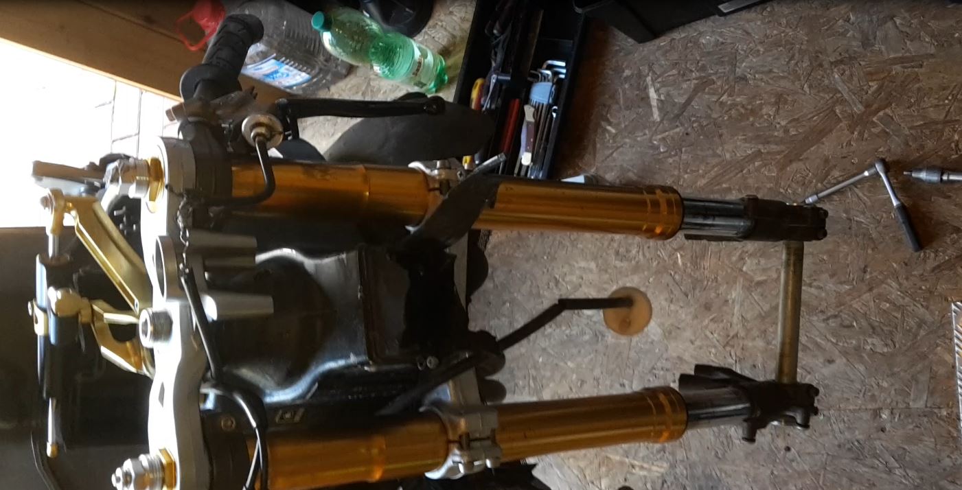 Ich hatte die Gabelholme, obere Gabelbrücke demontiert und alles wieder zusammengesetzt in der Hoffnung es hätte sich nur verspannt gehabt durch die Stauchung.