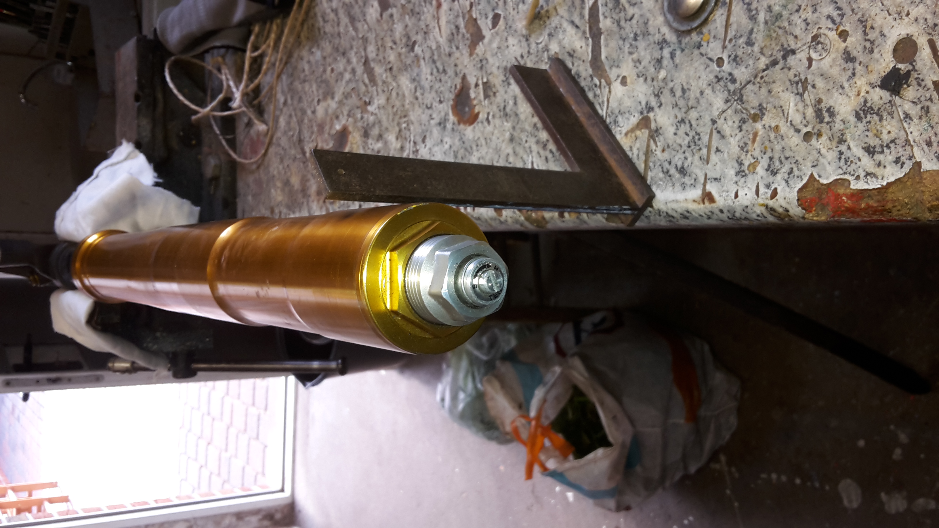Dazu die geraden Holme in die untere Gabelbrücke einbauen und eine entsprechend gerade Platte von vorn auf die Tauchrohre legen. Wenn diese Platte sauber aufliegt ist die untere Brücke sehr wahrscheinlich in Ordnung, wenn die Platte kippelt stehen die Holme windschif zueinander.