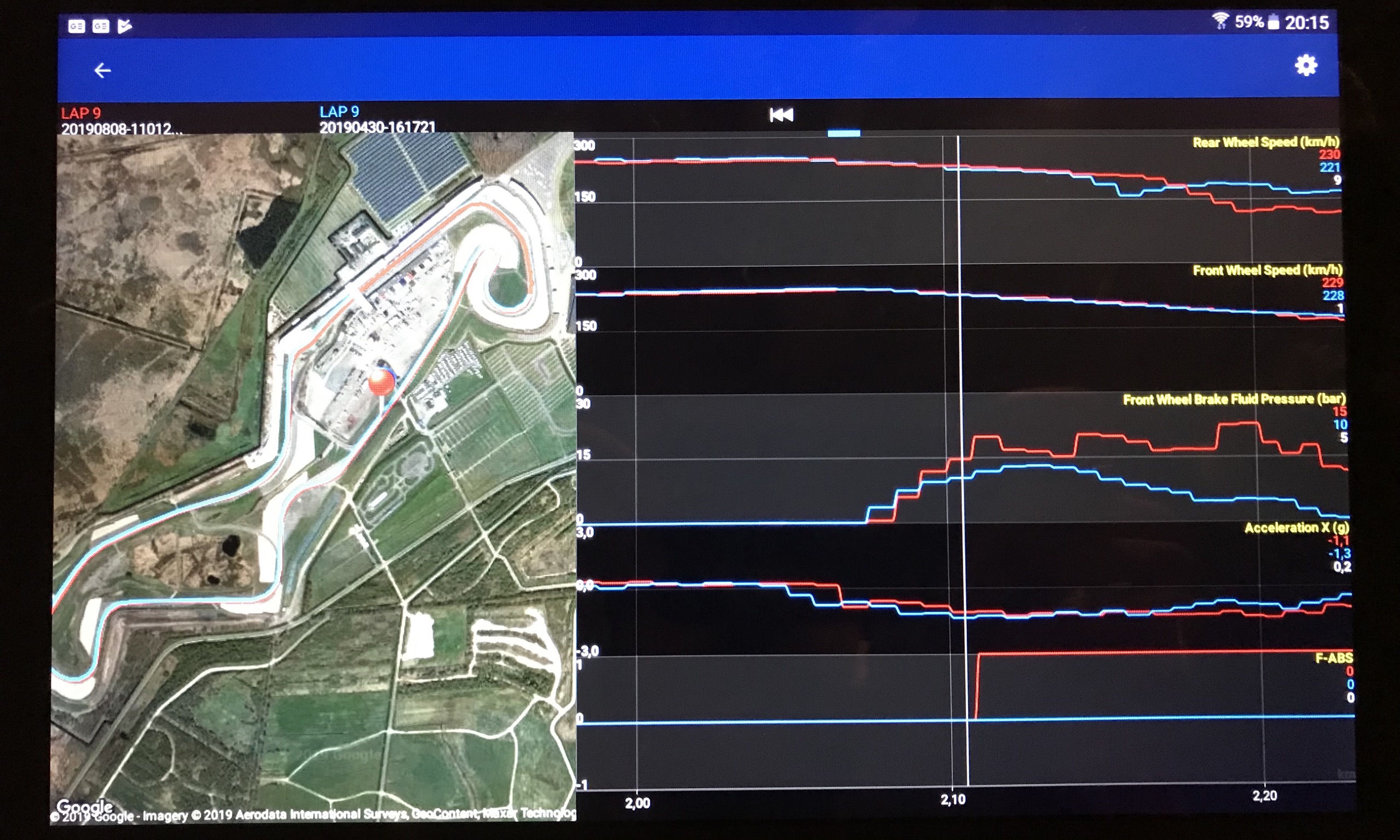 Hab noch mal die selbe stelle genommen mit der x Achsen Beschleunigung in „g“ und dazu noch die Abs an runde mit den Rad Geschwindigkeiten.chris9 hat geschrieben:könnte auch der geregelte druck sein, keine ahnung.
