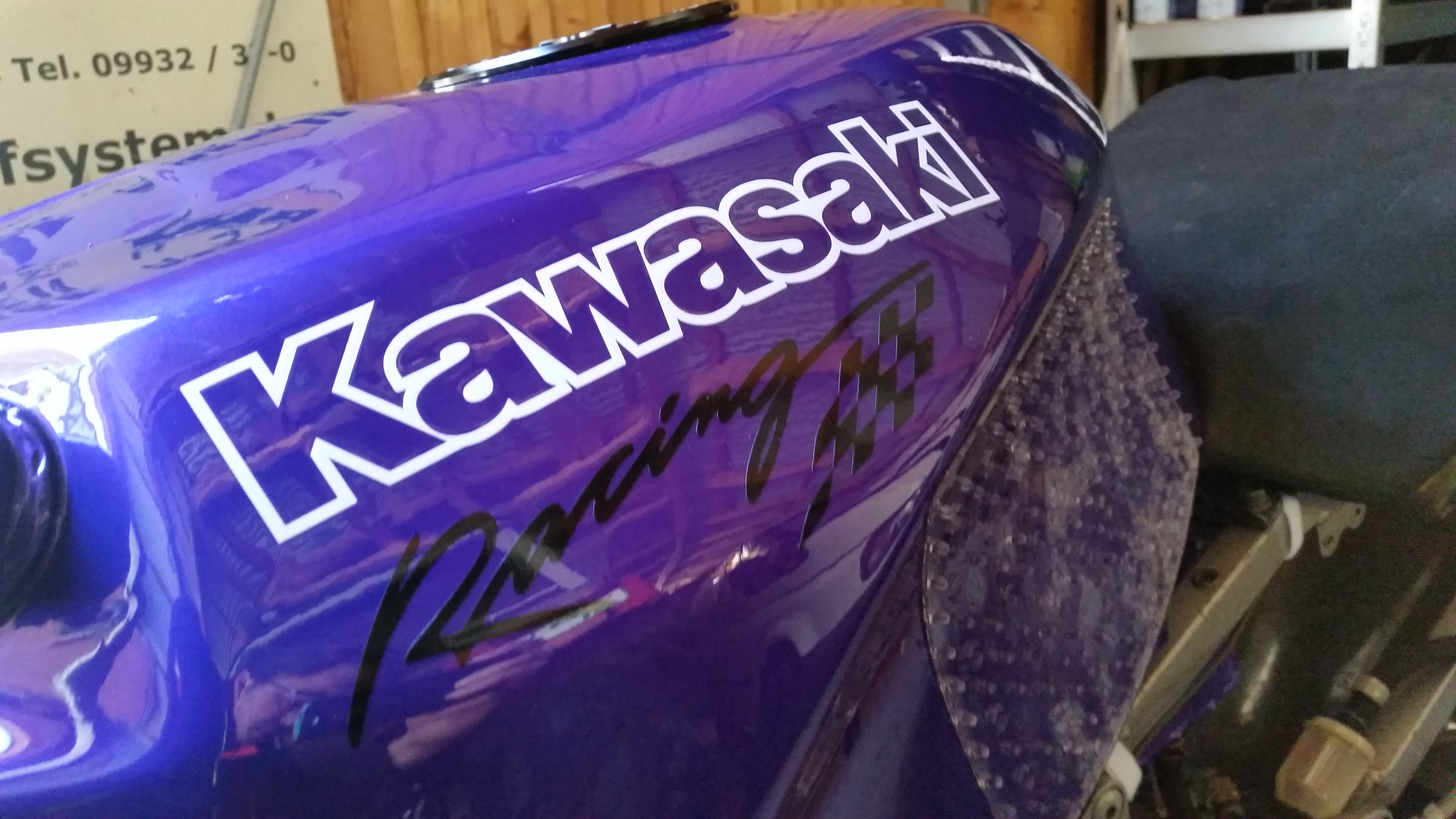 Kawasaki is überlackiert, racing nicht (Aufkleber zu spät gefunden).