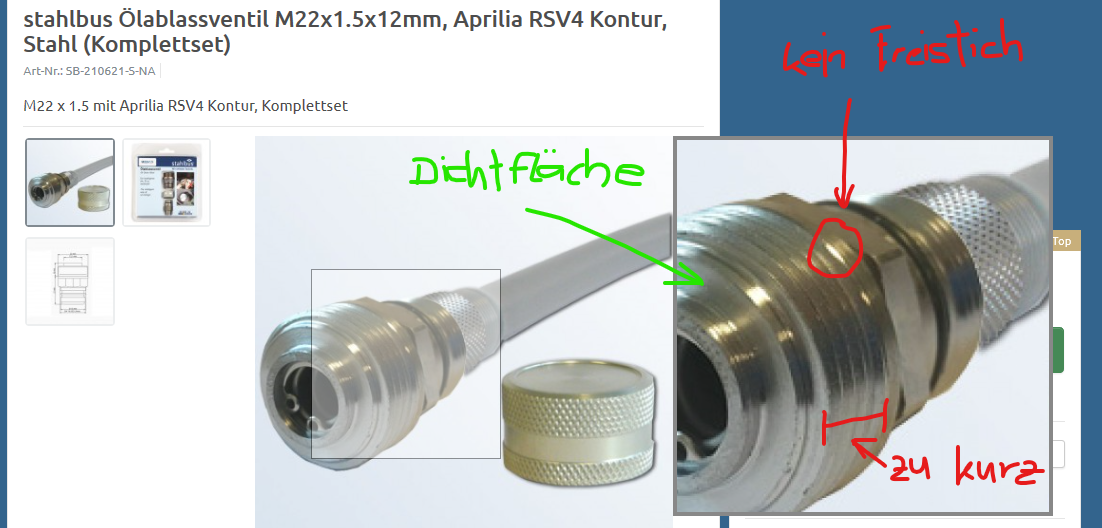 Das Gewinde am Ölablassventil ist nicht freigestochen (oder zu kurz, ...wie auch immer).