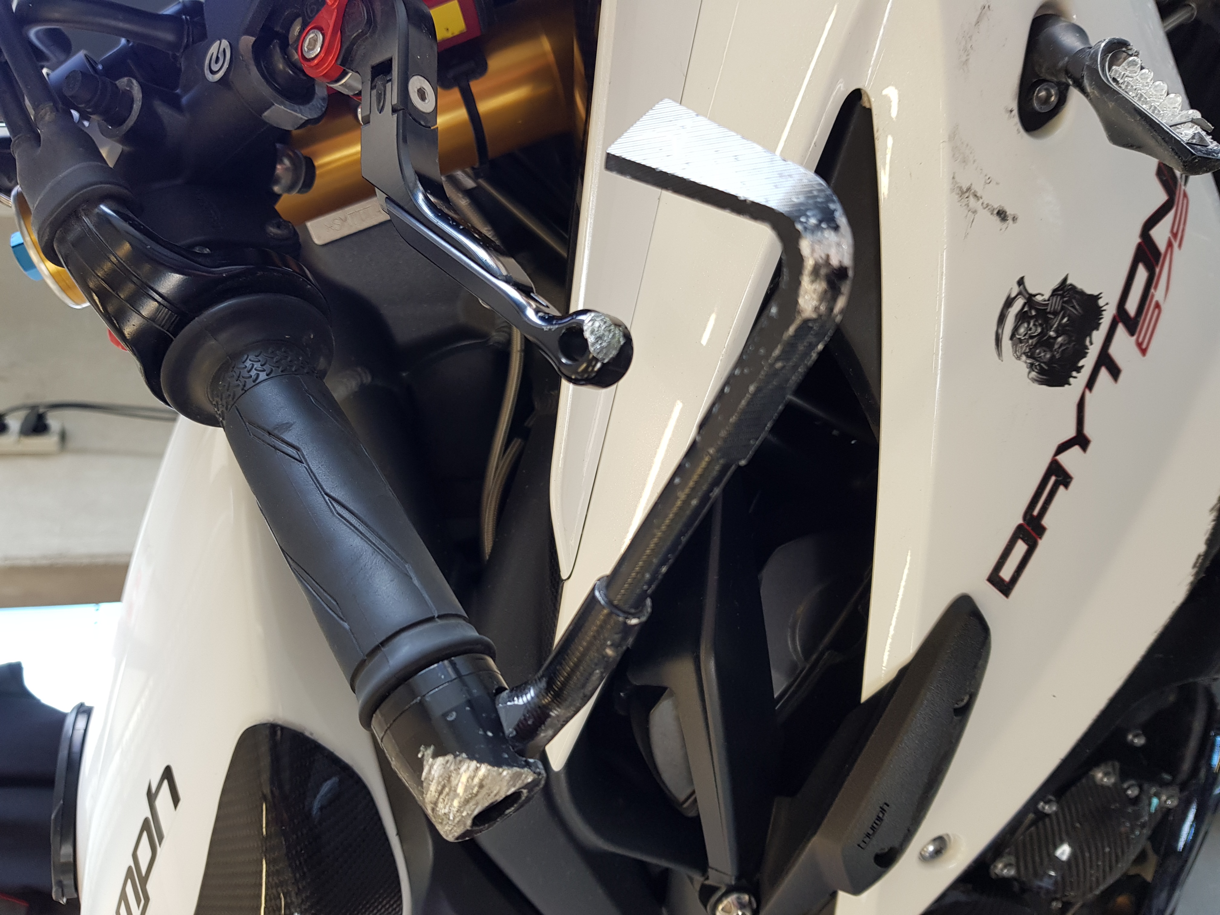Daytona 675 ist durch den 3Zylinder schmaler gebaut, da sind dann die Tankecken mehr gefährdet aber dafür gibt es extra Carbonecken die schlimmeres verhindern. Ab MY 13 sind auch die Lenkanschläge standhaft und den Edelstahlauspuff als zusätzliches Crashpad.